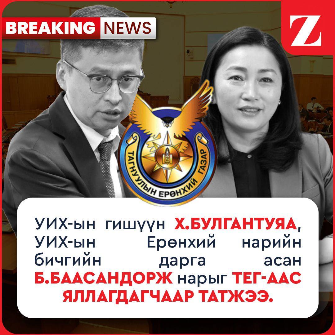 УИХ-ын гишүүн Х.БУЛГАНТУЯА, УИХ-ын Ерөнхий нарийн бичгийн дарга асан Б.БААСАНДОРЖ нарыг ТЕГ-аас яллагдагчаар татжээ.